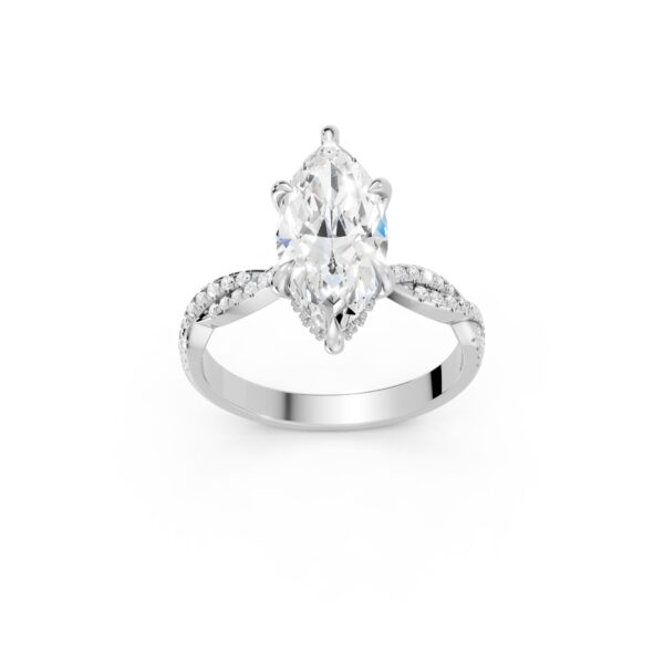 Symbolic and striking, this engagement ring features a marquise center stone set atop an intertwined double pavé band, representing two paths united as one. The flowing design adds depth, texture, and continuous sparkle while maintaining a graceful profile. A meaningful statement crafted to endure for generations.